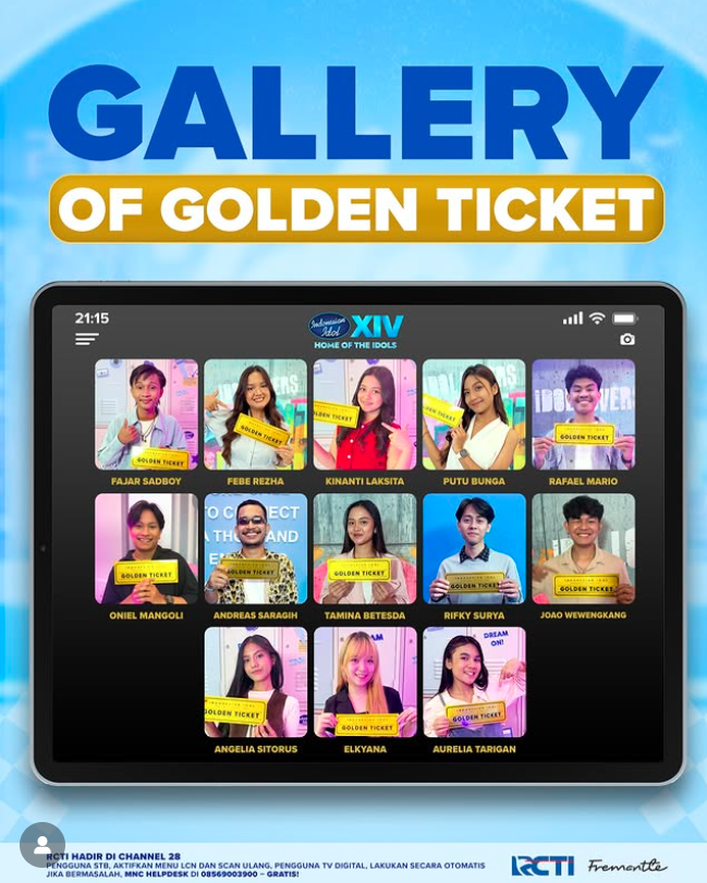 Melalui unggahan resmi bertajuk “Gallery of Golden Ticket”, Indonesian Idol memperkenalkan deretan kontestan terpilih yang dinilai layak melanjutkan perjuangan. Kehadiran mereka langsung mendapat sambutan antusias dari para penggemar setia, yang dikenal sebagai Idol Lovers.