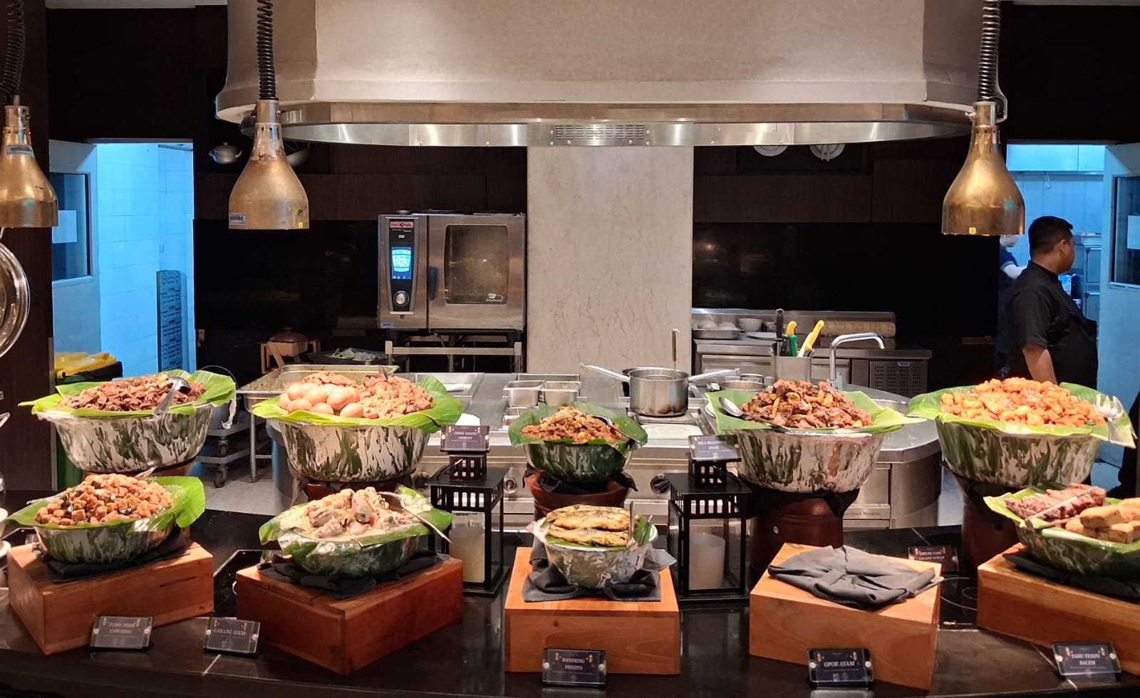 Tak hanya hidangan utama, aneka takjil tradisional turut melengkapi pengalaman berbuka puasa. Pengunjung dapat menikmati jenang atau bubur manis khas Jawa, aneka kolak, kue pukis, hingga awug—kudapan klasik Indonesia yang jarang ditemukan di hotel berbintang.