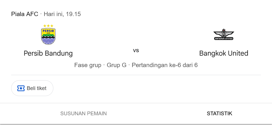 Untuk para pendukung yang ingin mengikuti perkembangan pertandingan secara langsung, akses link live score Persib Bandung vs Bangkok United menjadi kebutuhan penting agar tidak tertinggal momen-momen krusial yang terjadi di lapangan.