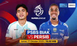 BeritaBandungRaya.com – Laga panas Super League Indonesia kembali hadir malam ini, Jumat (17/10/2025), mempertemukan Persib Bandung kontra PSBS Biak di Stadion Maguwoharjo, Sleman. Pertandingan dijadwalkan mulai pukul 19.00 WIB dan dapat disaksikan lewat Indosiar atau live streaming di Vidio.com.