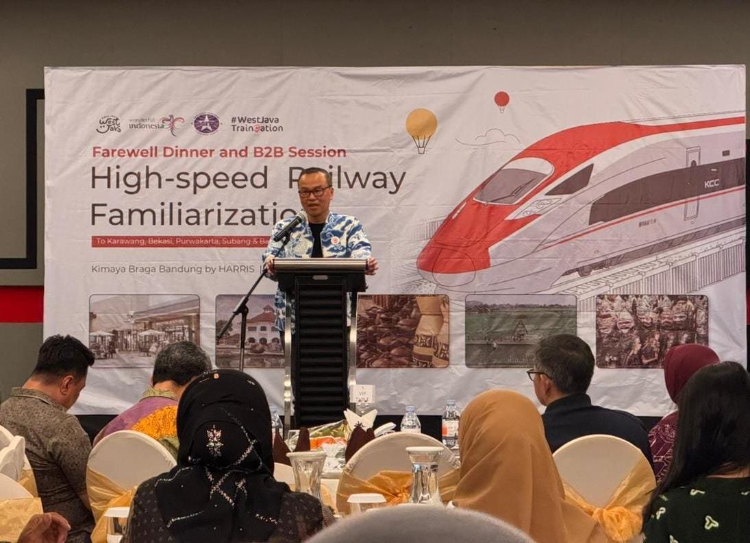 BeritaBandungRaya.com – Promosi pariwisata Jawa Barat kini melaju secepat kereta cepat Whoosh. Selama empat hari, 14–17 Oktober 2025, para pelaku industri wisata dari dalam dan luar negeri menjelajahi potensi wisata di sepanjang jalur kereta cepat melalui kegiatan High-speed Railway Familiarization Trip to Karawang, Bekasi, Purwakarta, Subang & Bandung. Program kolaboratif ini tidak hanya memperkenalkan destinasi baru di Jawa Barat, tetapi juga menandai babak baru pariwisata berbasis rel yang ramah lingkungan dan berdaya saing global.