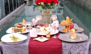 Anda dan pasangan dapat menikmati makanan-makanan fusion mulai dari Val Au Vent Mushroom Smoked Beef, Seared Canadian Scallop with Green Asparagus Garlic Butter, Panna Cotta, Crème Brulle hingga Grilled Fillet Mignon Layered with Poached Apple and Cheese on Top serta masih banyak lagi menu lainnya (dengan total 10 menu) yang bisa dinikmati oleh anda dan pasangan.