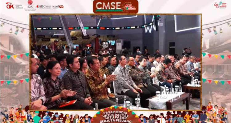 PASAR MODAL BEI Gelar CMSE 2025: Pasar Modal Kini Terbuka untuk Semua Kalangan Ekbis|17 Oktober 202517 Oktober 2025oleh Rakha Mughits BertaBandungRaya.com – Gelaran Capital Market Summit & Expo (CMSE) 2025 resmi dibuka