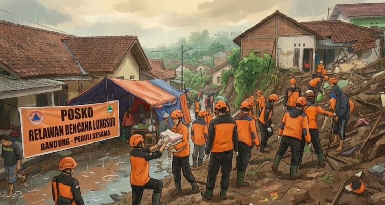 Diskarmatan Kota Bandung Terjun Langsung Bantu Evakuasi Korban Longsor di Cisarua Lembang