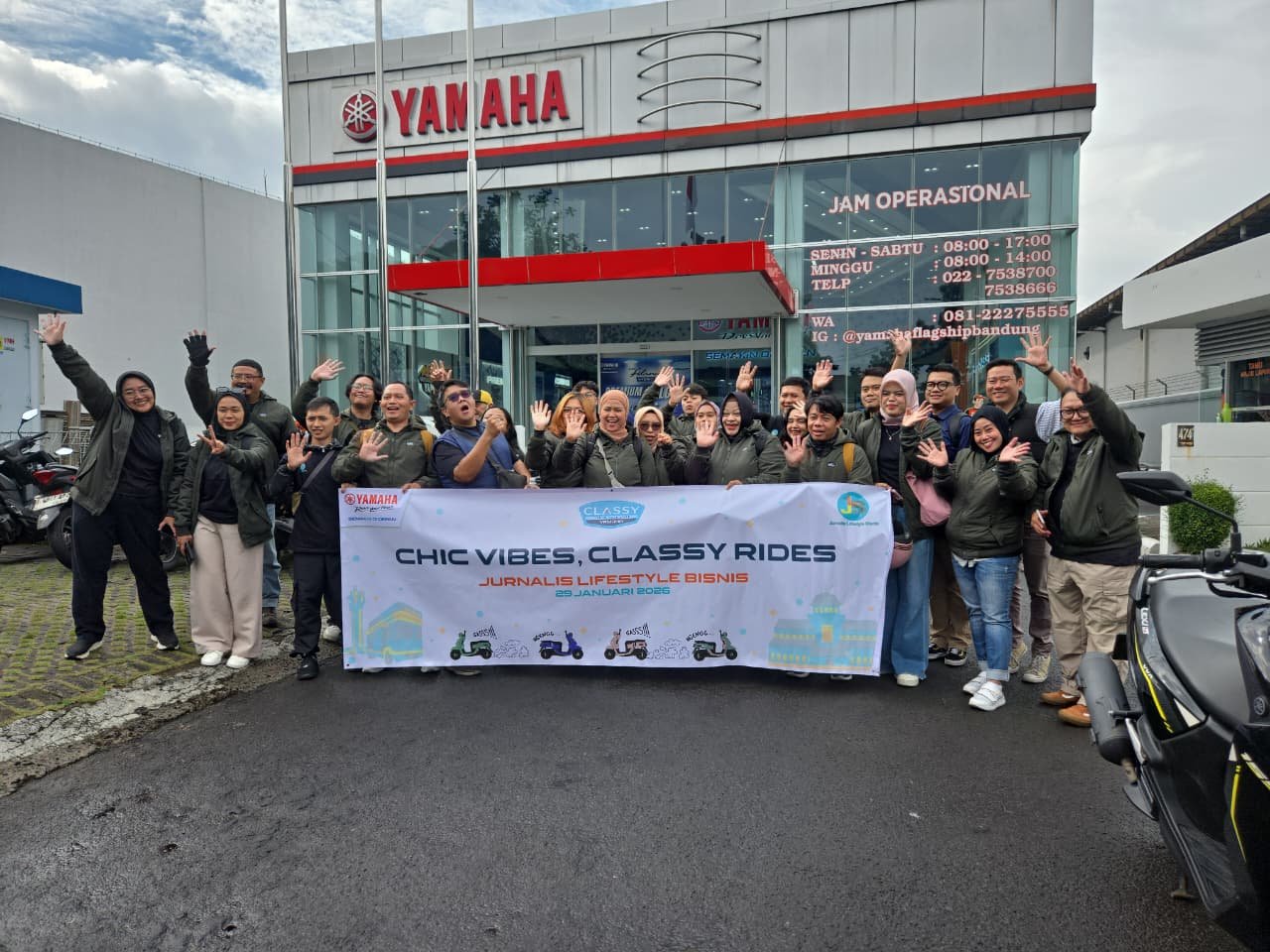 BeritaBandungRaya.com – Yamaha Jawa Barat kembali menghadirkan pengalaman berkendara berbeda melalui kegiatan “Chic Vibes, Classy Ride”, hasil kolaborasi eksklusif bersama jurnalis lifestyle dan bisnis di Bandung. Kegiatan ini berlangsung pada Kamis, 29 Januari 2026, dengan konsep city touring, eksplorasi seni, serta diskusi gaya hidup berkendara urban khas Classy Yamaha.